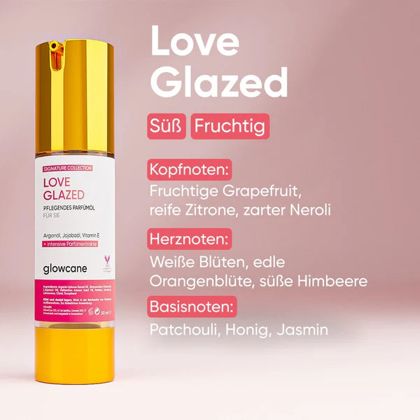 Love Glazed ist die süß-fruchtige Symphonie aus reifen Himbeeren und exotischem Hibiskus. Erlebe die puren Fruchtnoten im Herzen deiner süßesten Träume, während dich der Dreiklang cremiger Vanille, verlockendem Moschus und feinem Karamell zärtlich umschmeichelt. Süß, verführerisch, verspielt.